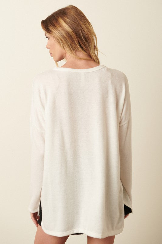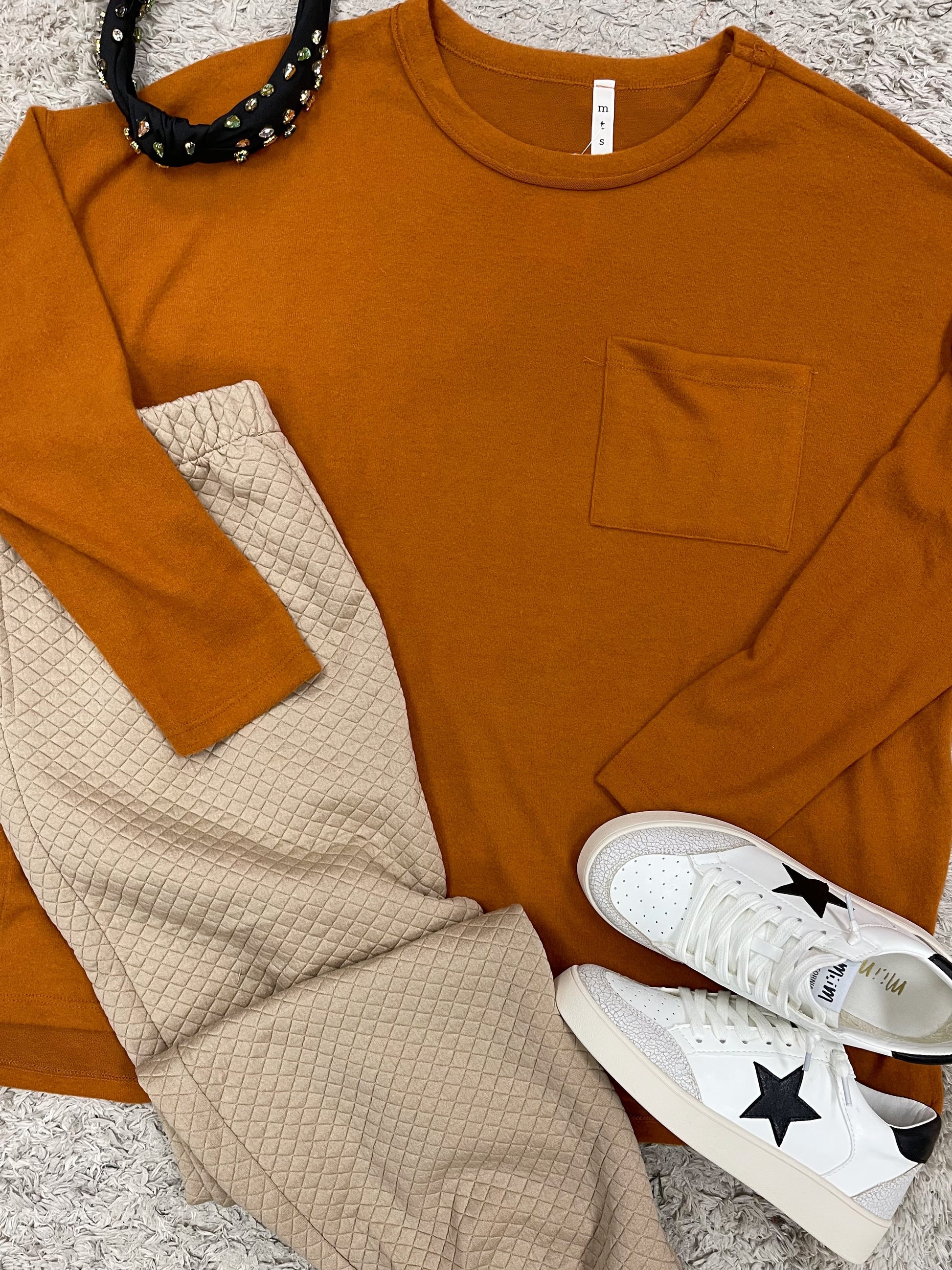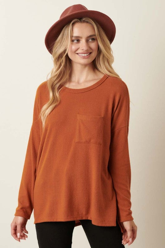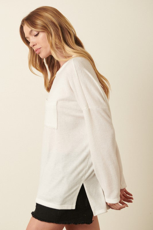 -BRUSHED HACCI KNIT FABRIC -ROUND NECK -1 POCKET DEATIL ON CHEST -DROP SHOULDER -LONG SLEEVE -STRAIGHT HEMLINE -SIDE SLIT