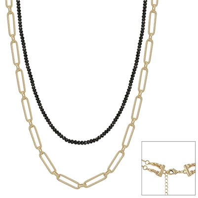 Black Crystal and Gold Chain Layered 16"-18" Necklace