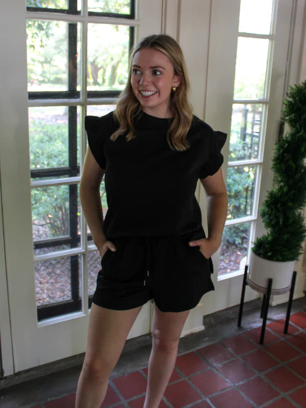 Black Textured Shorts