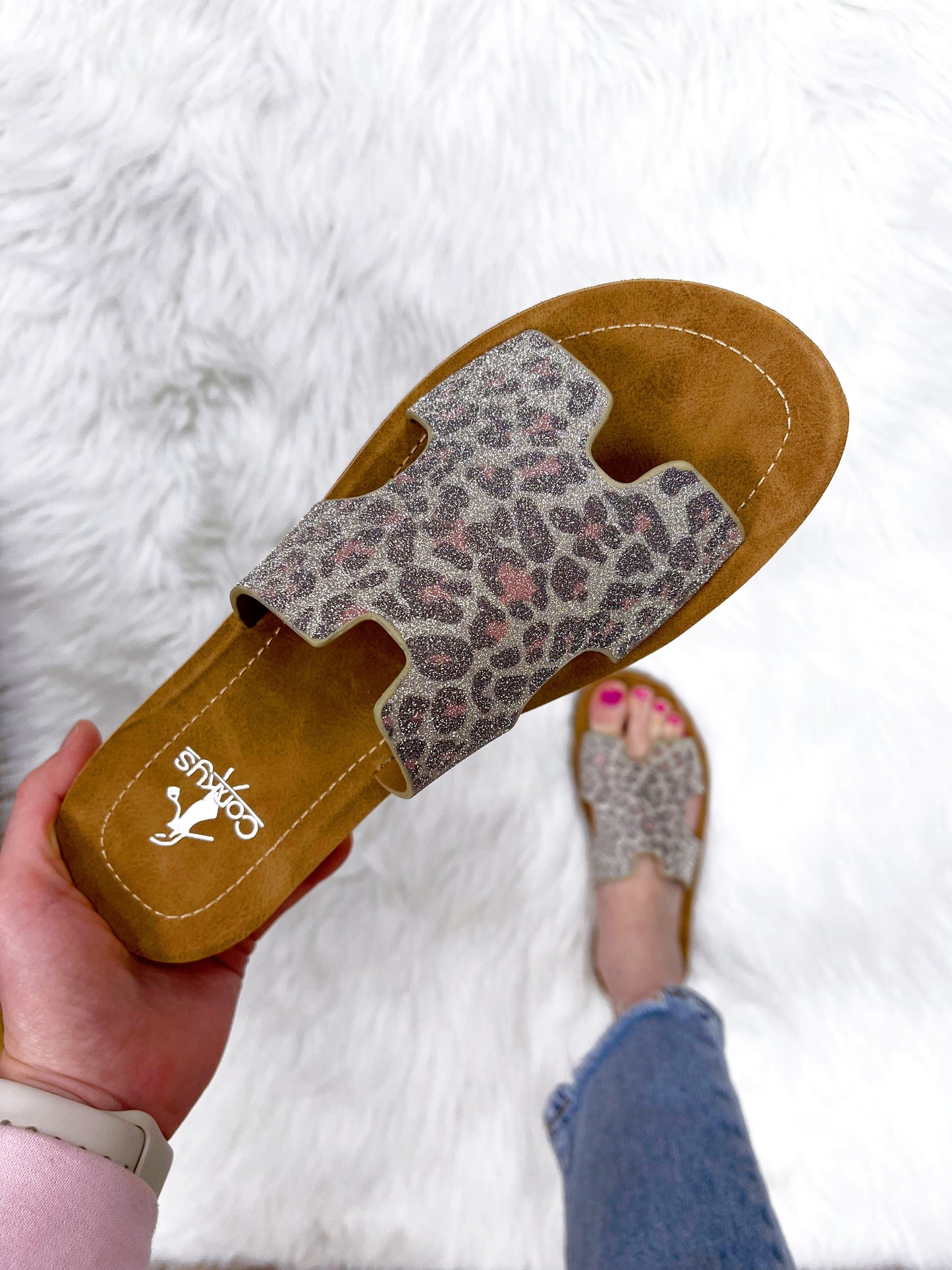 Bogalusa Shimmer Leopard Sandals-Corkys