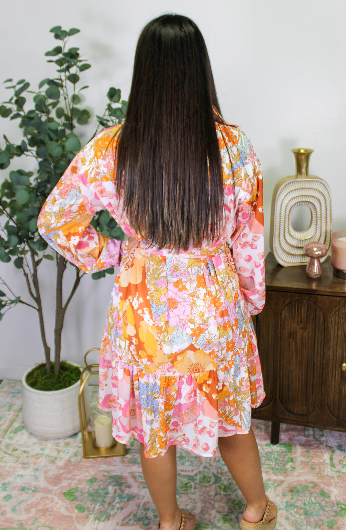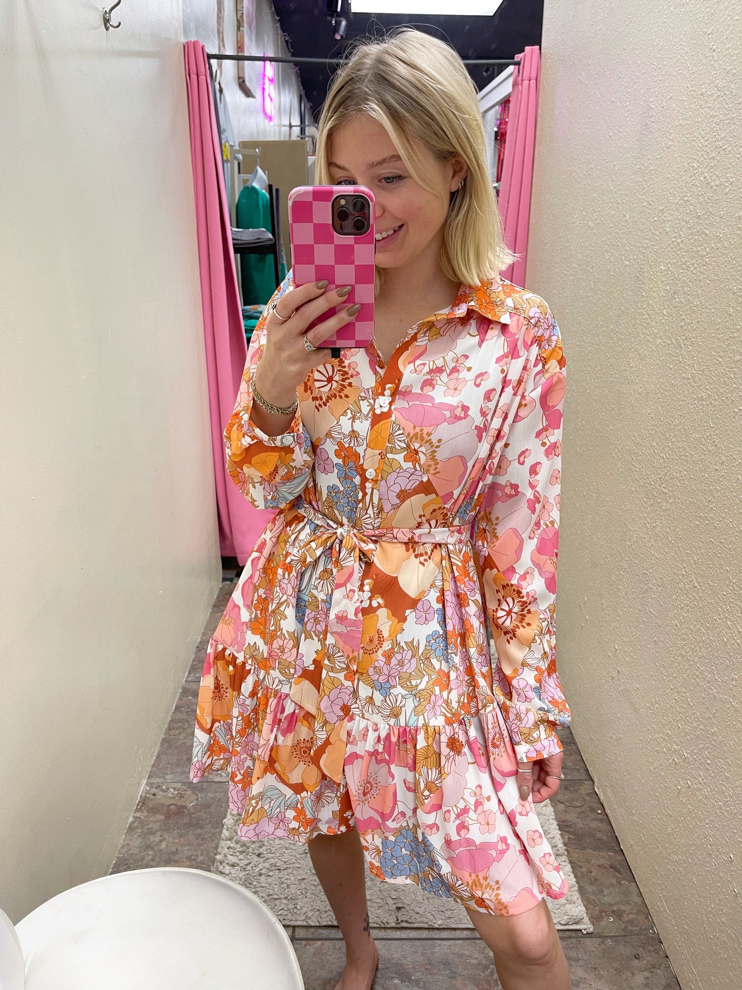 Elevate your style with this Boho Paisley Belted Dress. Boasting a warm color palette and a beautiful boho floral pattern, this dress is perfect for adding a touch of bohemian chic to your wardrobe. The tie belt accentuates your waist while the button up front and flowy silhouette add a touch of elegance. Complete the look with the long sleeves and embrace your inner free spirit.