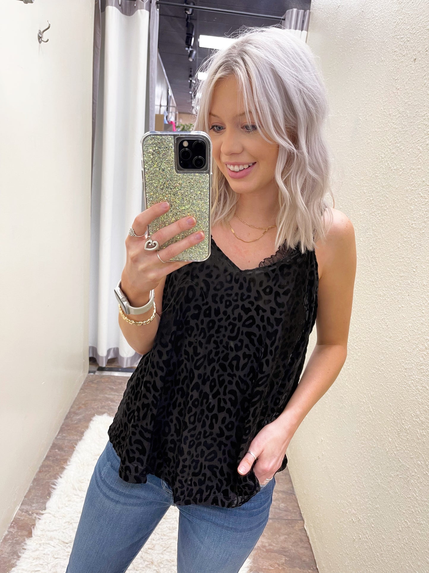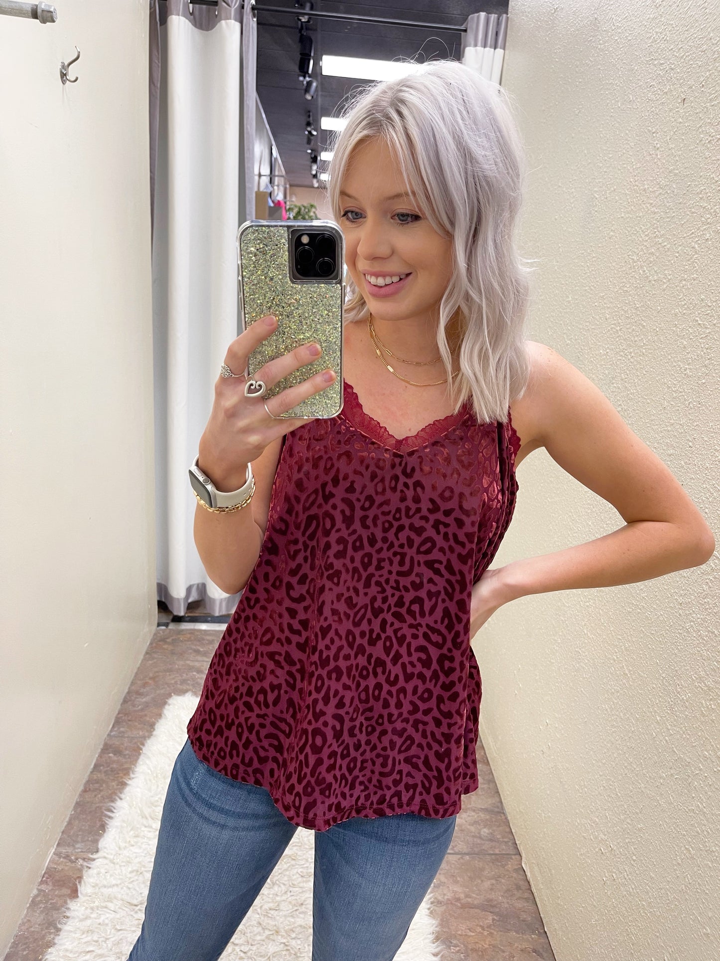 How cute is this cami for all your fall/winter layering! 😍 We are loving this burn out velvet trend. S-L
