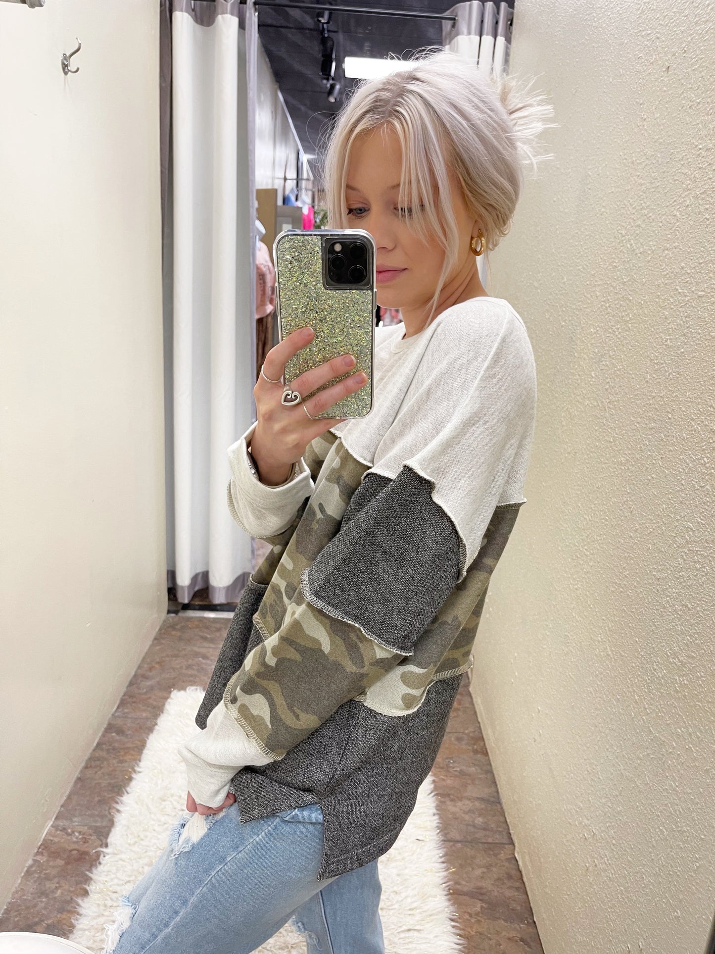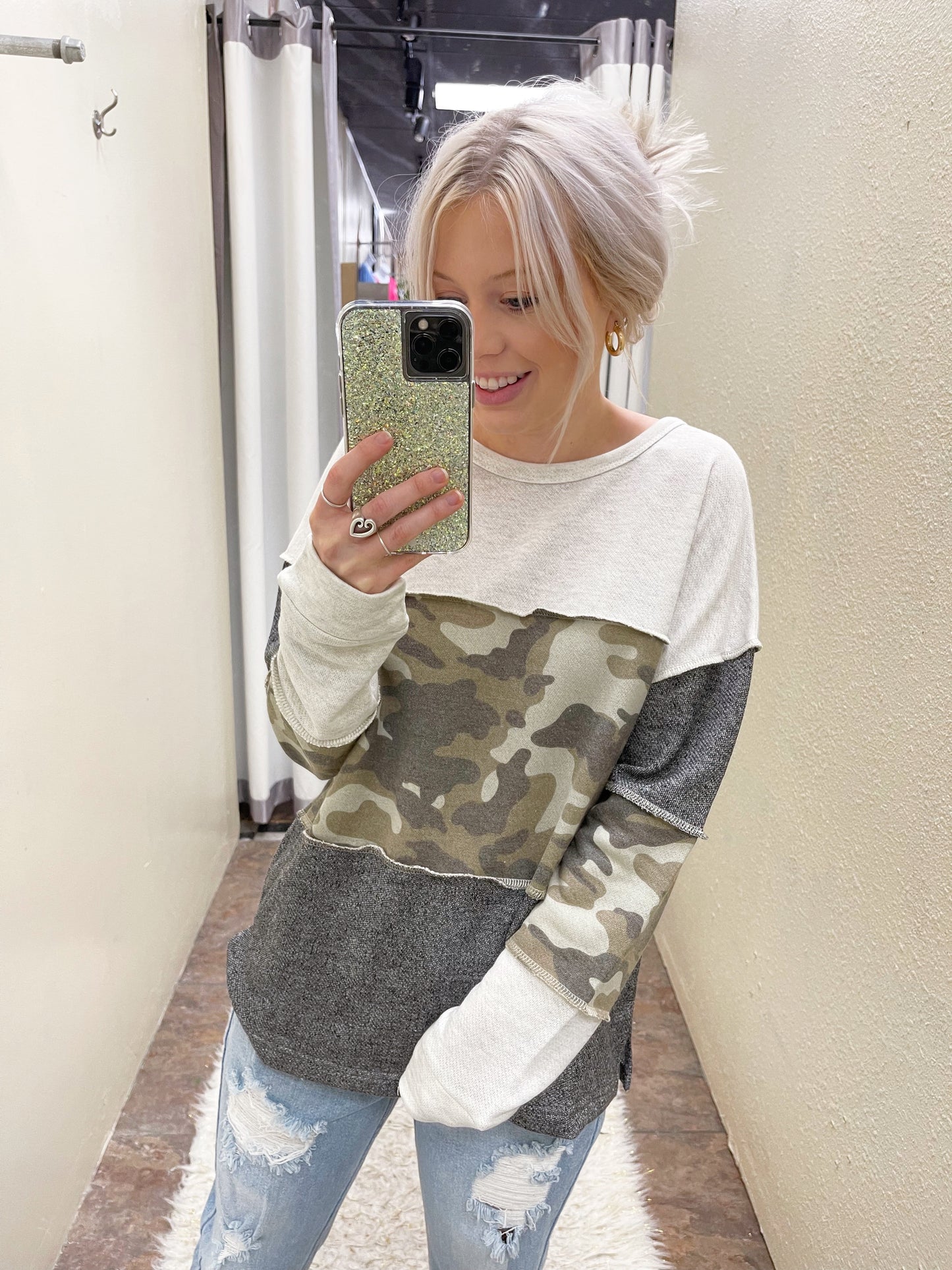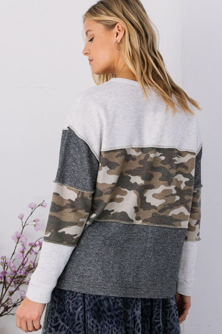 Contrast Camo Pullover Top