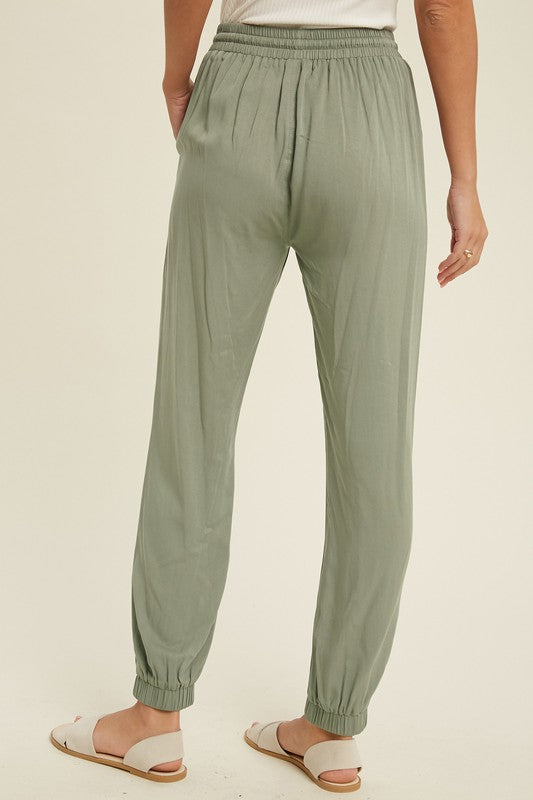 ELASTIC/TIED WAIST JOGGERS WITH SIDE POCKET