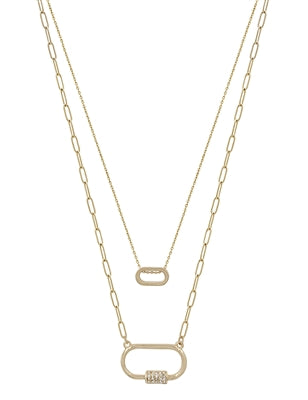 Double Layered Rhinestone Carabiner 17",19" Necklace