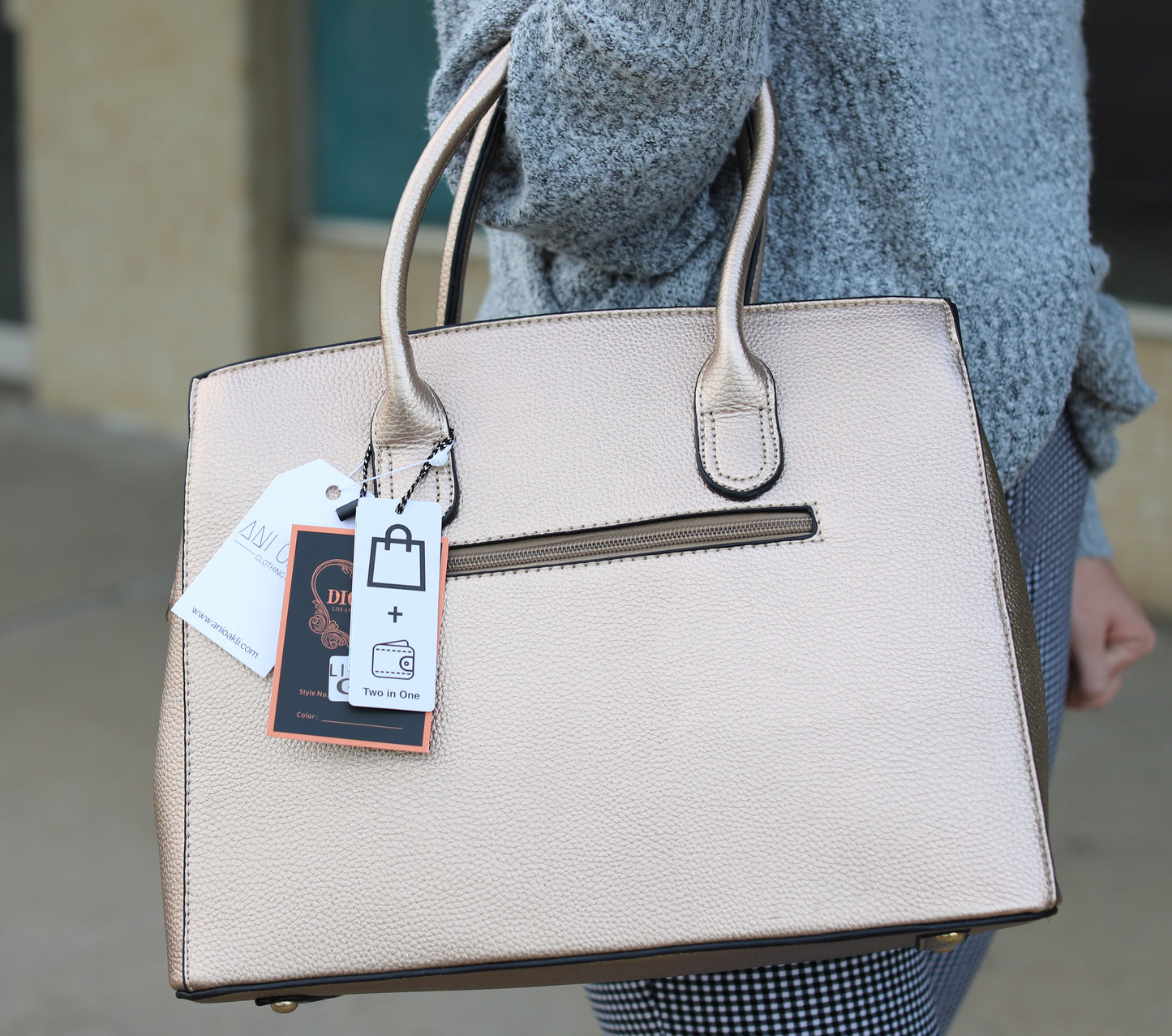 2 IN 1 HANDBAG SET - Wallet included - Zipper top closure -Textured faux leather - Rear zipper pocket - Protective metal foot base - Inside lining with open/zipper pockets