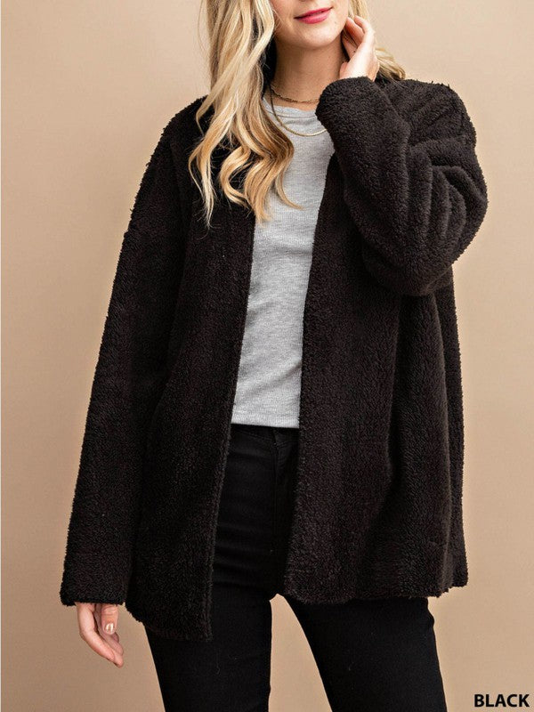 Fall and winter wardrobe must have! Stay cute and comfy in this black double face hair cozy cardigan!