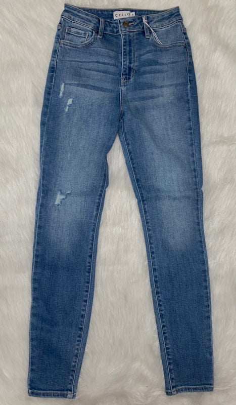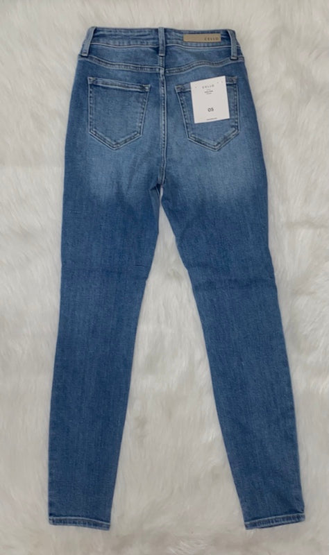 These skinny jeans have subtle distressing on the front. These jeans are the perfect light washed color. True to size.