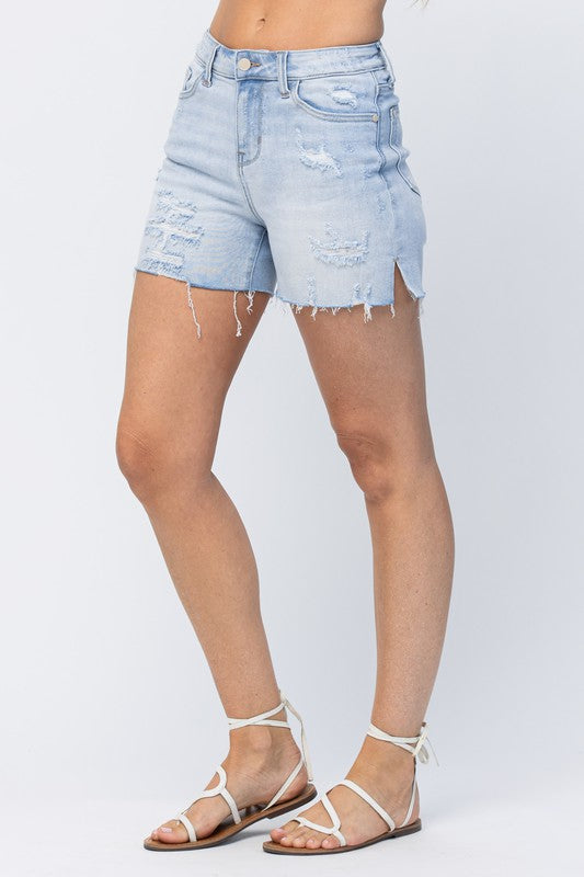 sIDE SLIT LIGHTWASH HIGH WAISTED SHORTS