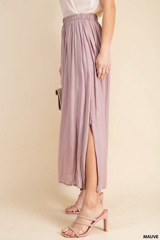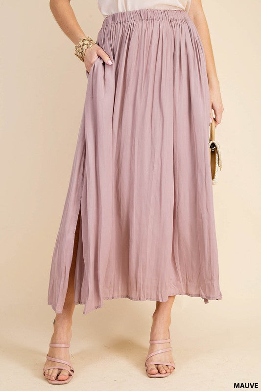 DEEP SIDE SLIT A-LINE SKIRT WITH SIDE POCKETS