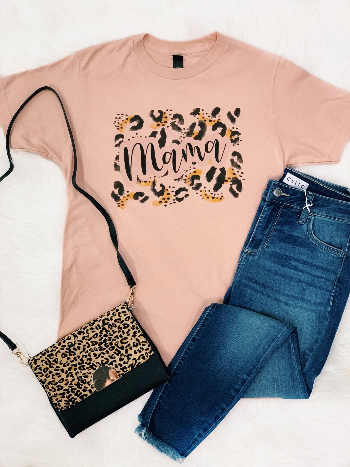 Peach Mama tee with leopard print design