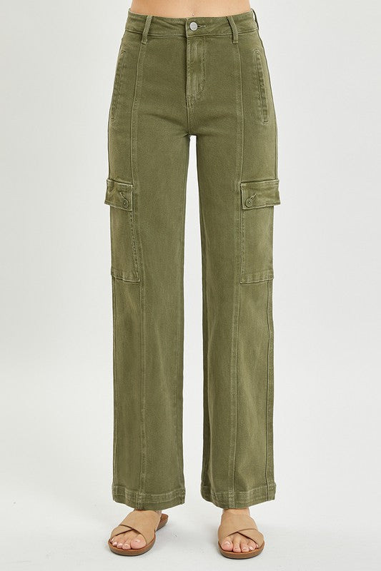 HIGH RISE WIDE CARGO PANTS "No functional front pocket"
