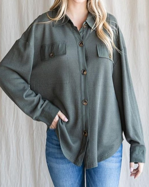 OVERSIZE THERMAL BUTTON DOWN SHIRT
