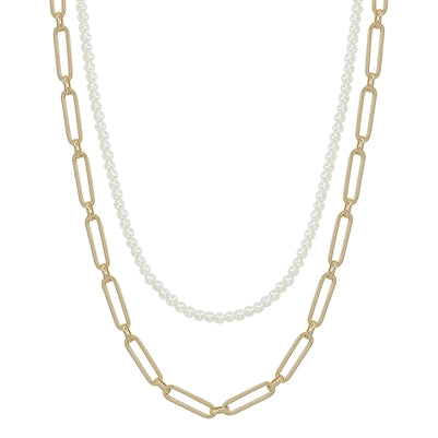 Pearl and Gold Chain Layered 16"-18" Necklace