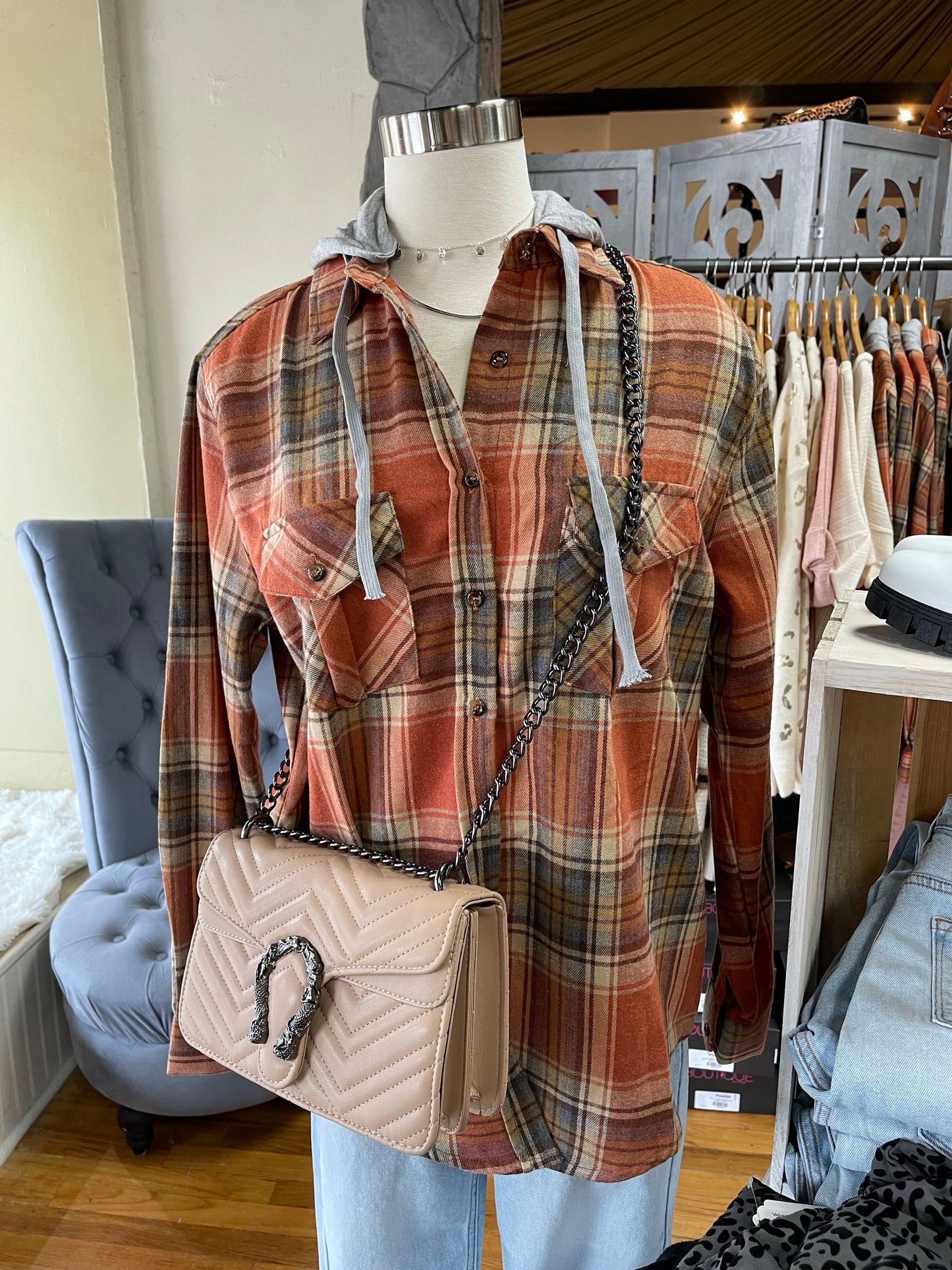 Plaid Hooded Top