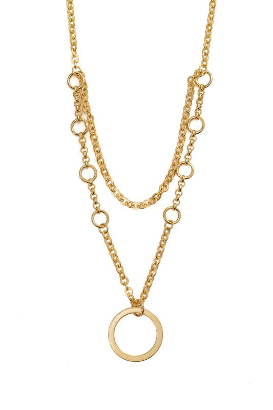 A gorgeous and unique must have pendant charm necklace that measures 14+2" in length. This gorgeous necklace features a beautiful chain link metallic design with a unique ring charm pendant. This necklace is an excellent addition to any collection and will add a stunning touch to your outfit for any occasion you have planned, casual or formal.