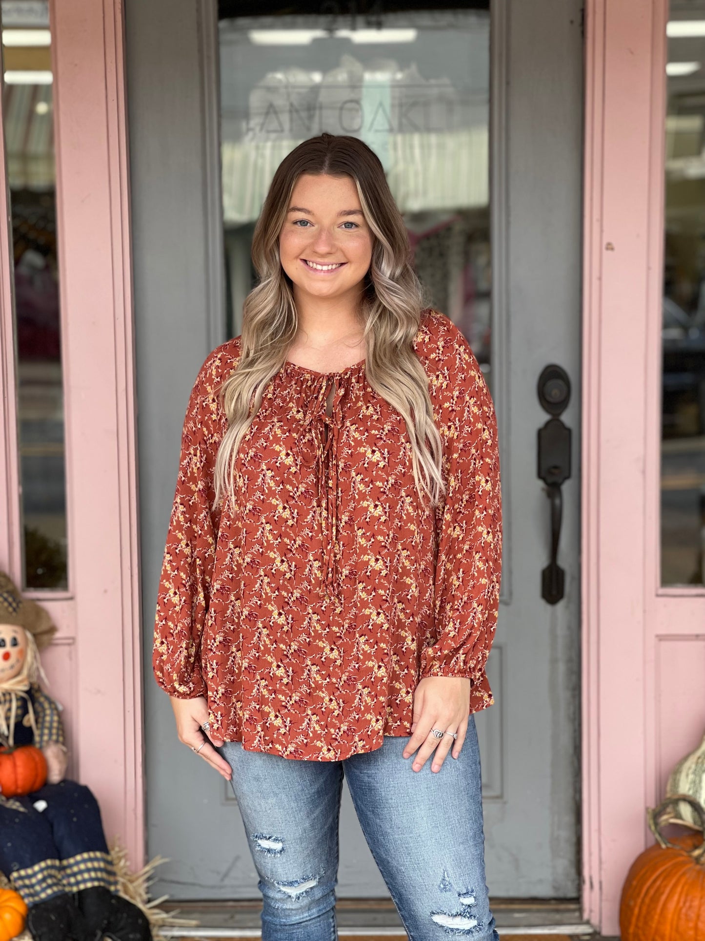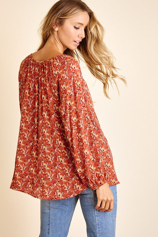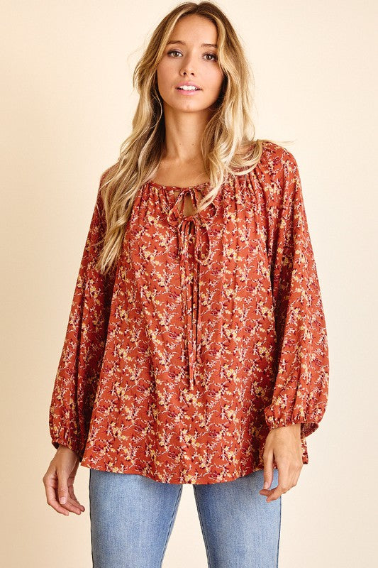 Rust Floral Tunic Top