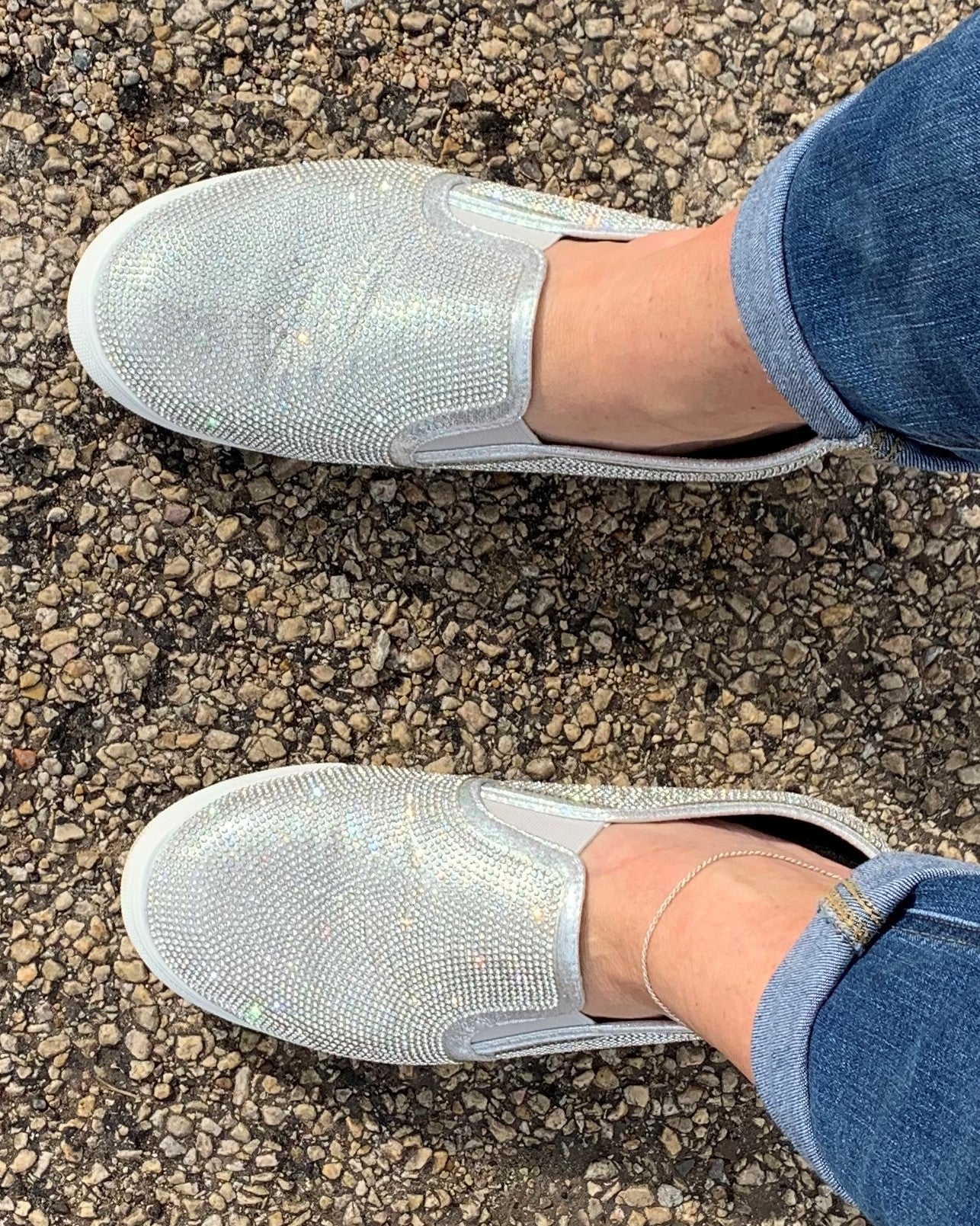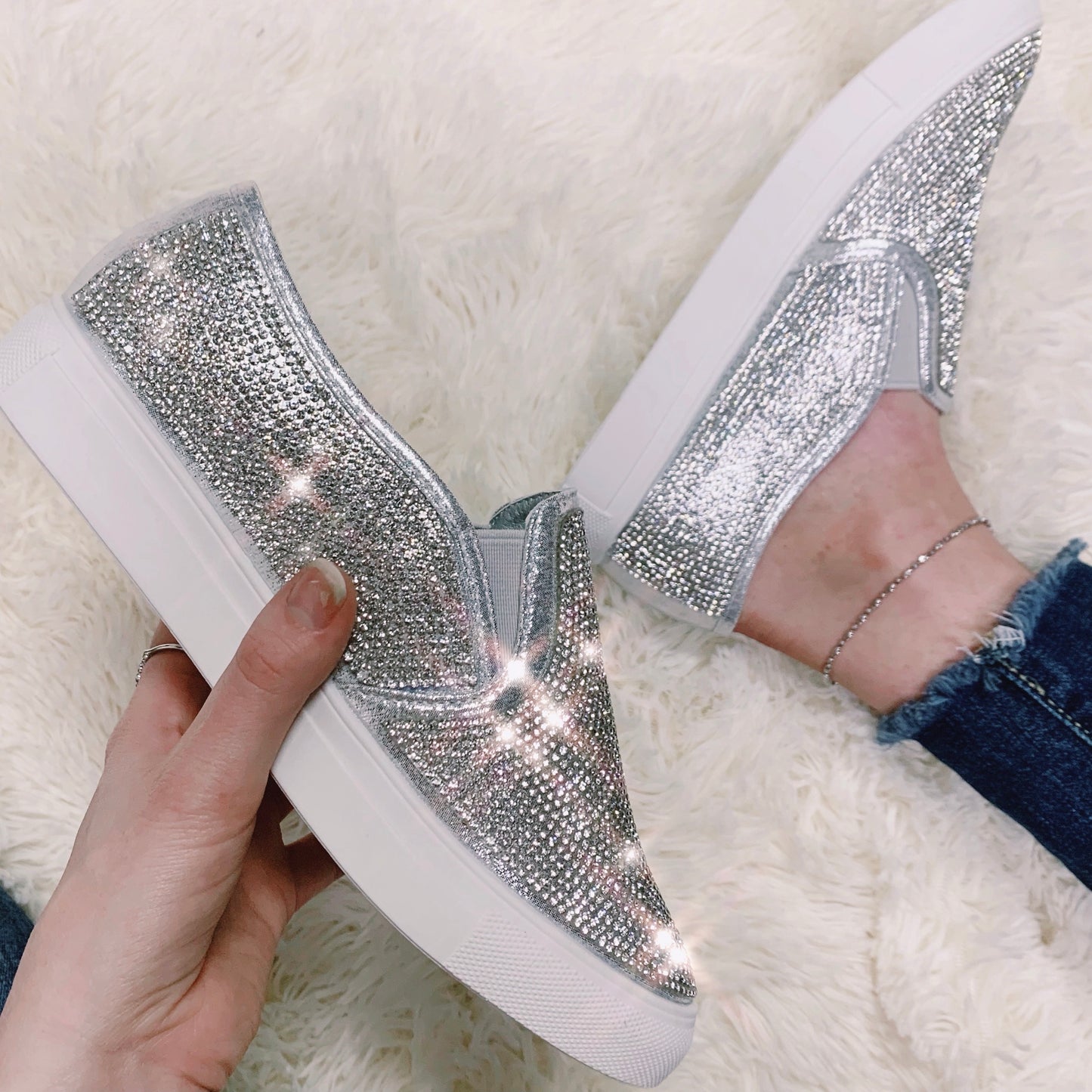 Super gorgeous rhinestone slip-on sneakers that will have you turning heads for sure!
