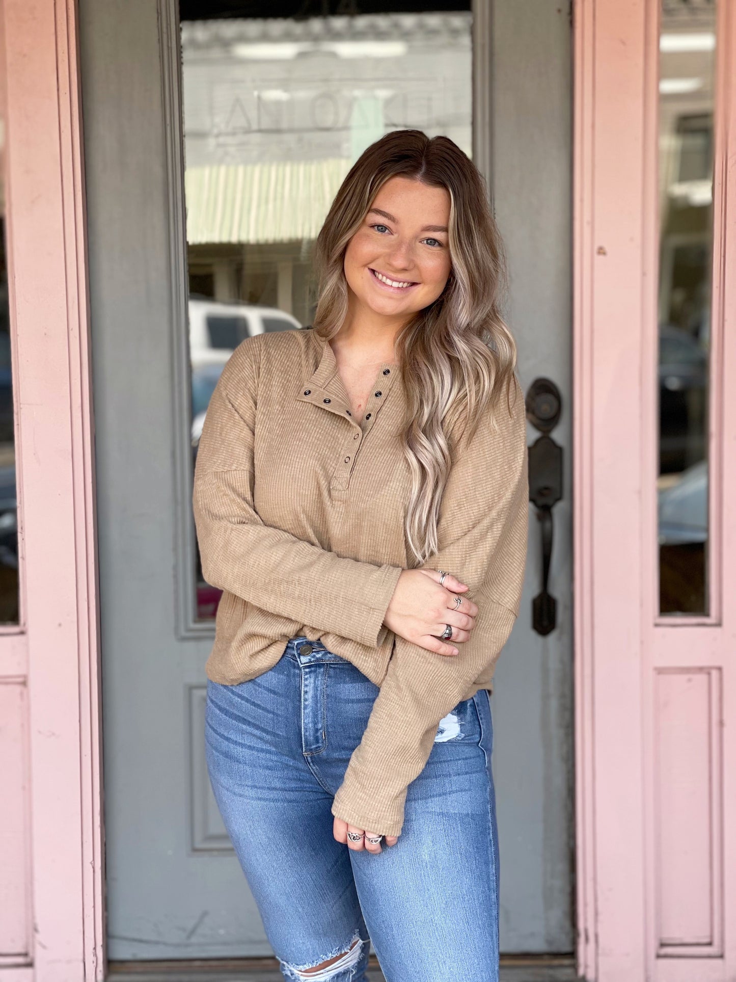 Taupe Rib Knit Henley Top