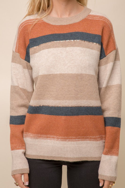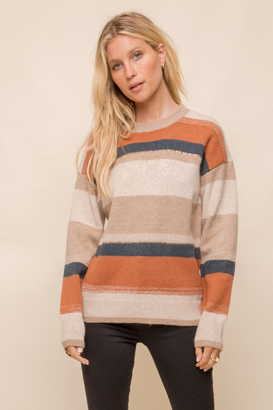 MULTI COLOR STRIPE SWEATER PULLOVER -59% ACRYLIC 28% POLYESTER 13% NYLON