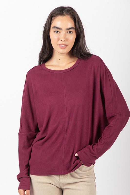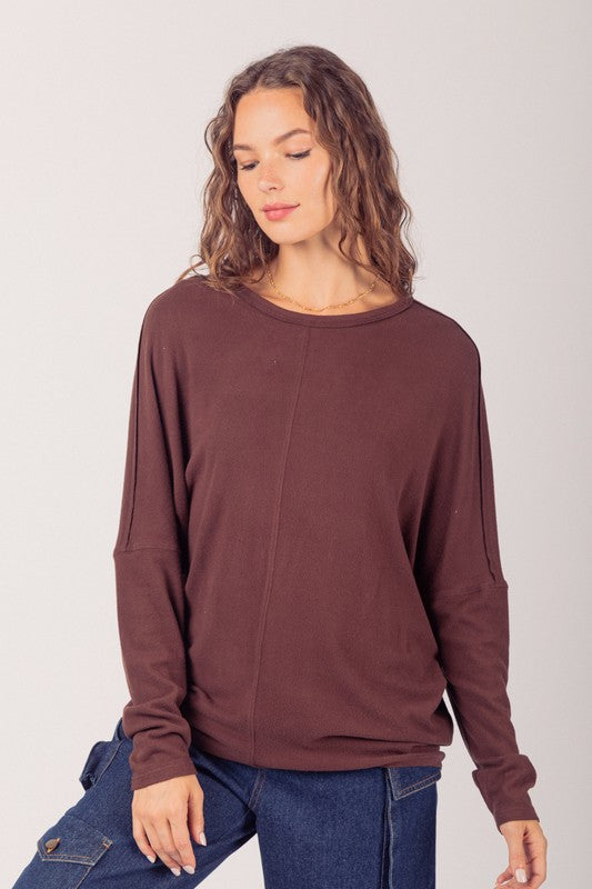 - Dolman Sleeve Oversized Comfy Knit Top - Round Neck - Long Sleeve - Drop Shoulder