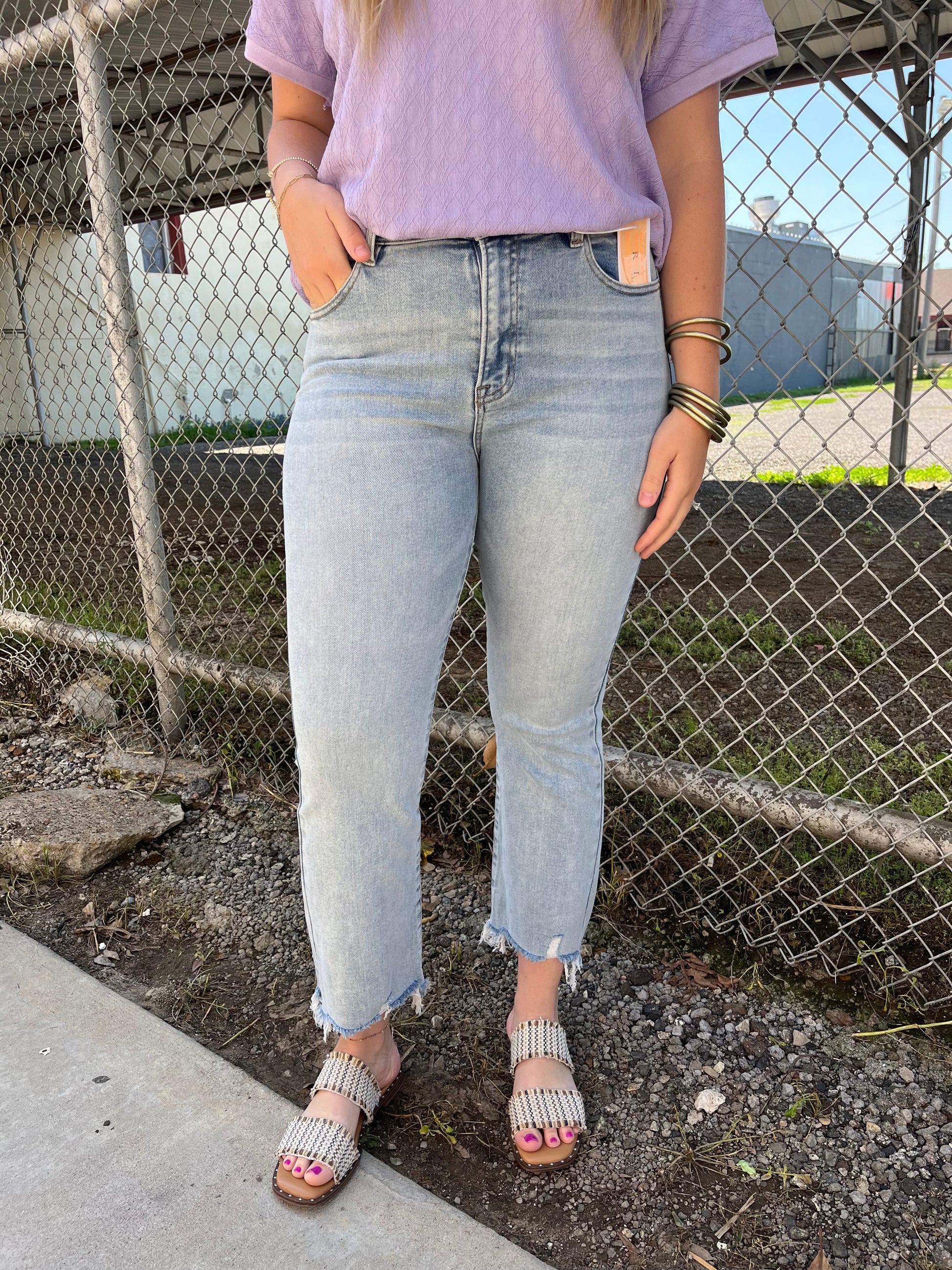 HIGH RISE CROP FLARE FRAYED HEM JEANS