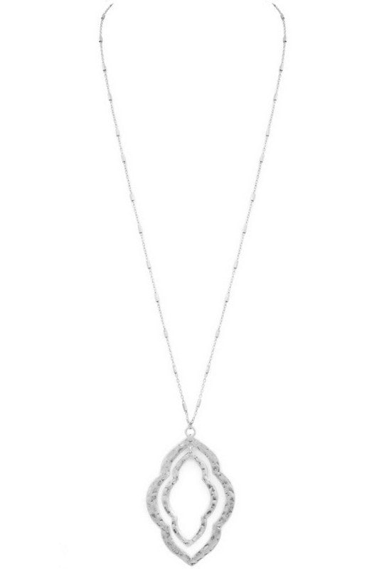 Metal Moroccan pendant long necklace -Worn Silver